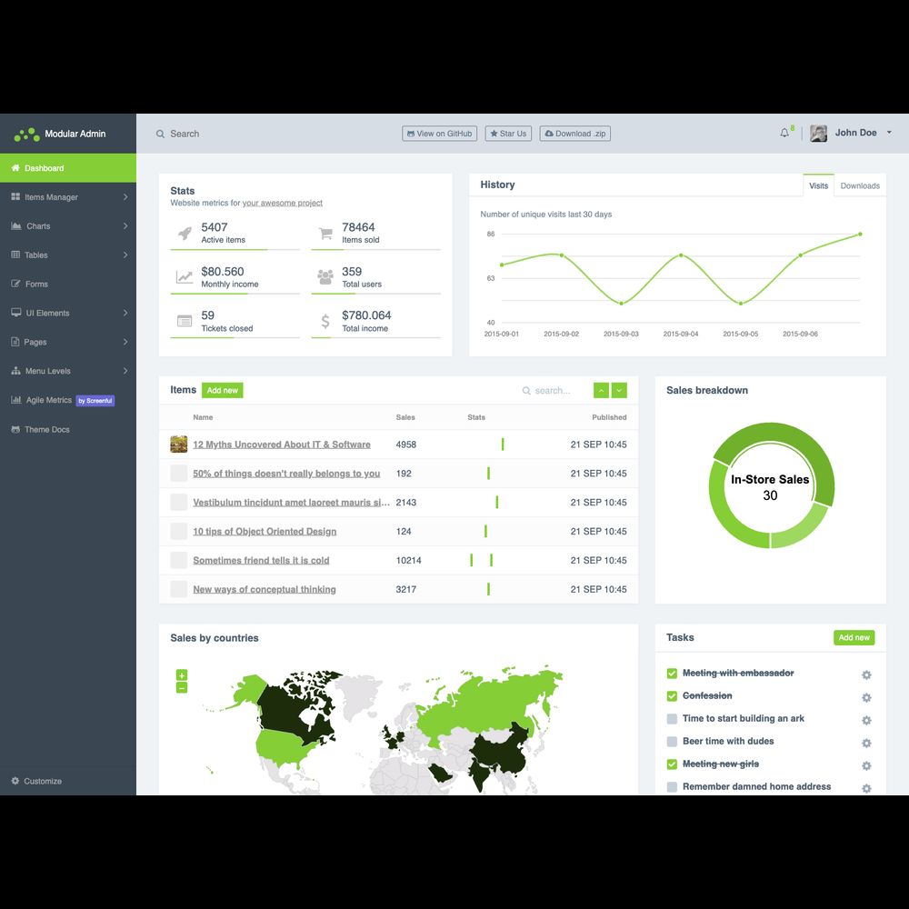 ModularAdmin is an open source dashboard theme built in a modular way. That makes it easy to scale, modify and maintain.