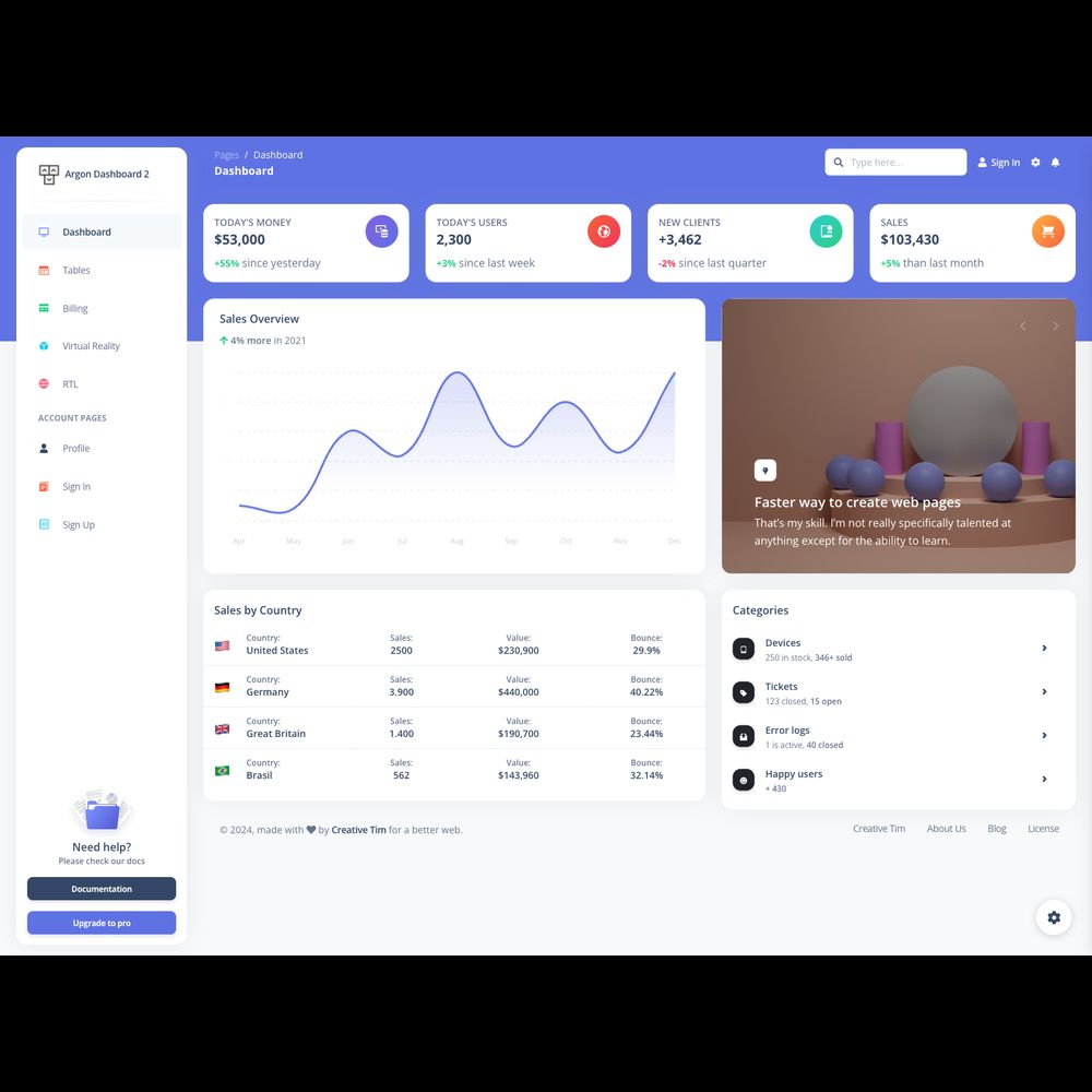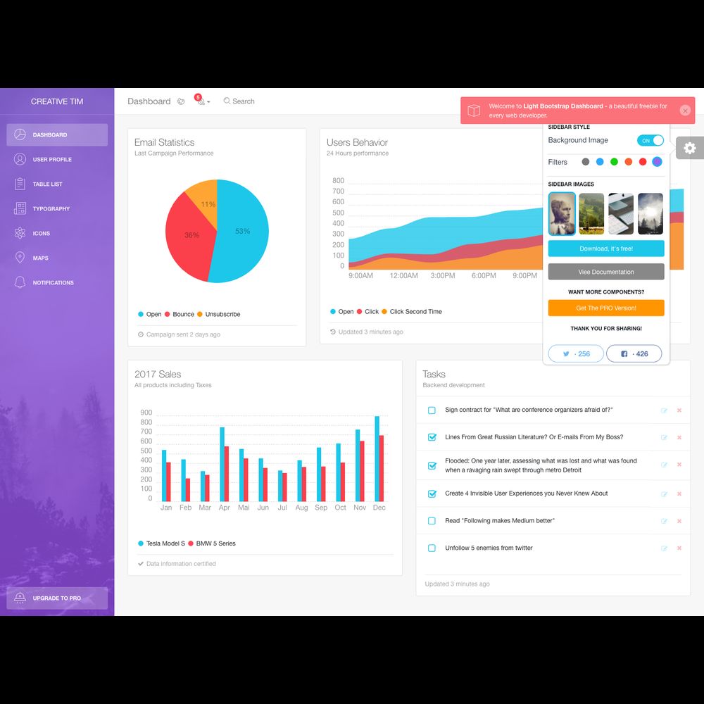 Light Bootstrap Dashboard is an admin dashboard template designed to be beautiful and simple. It is built on top of Bootstrap 4 and it is fully responsive.