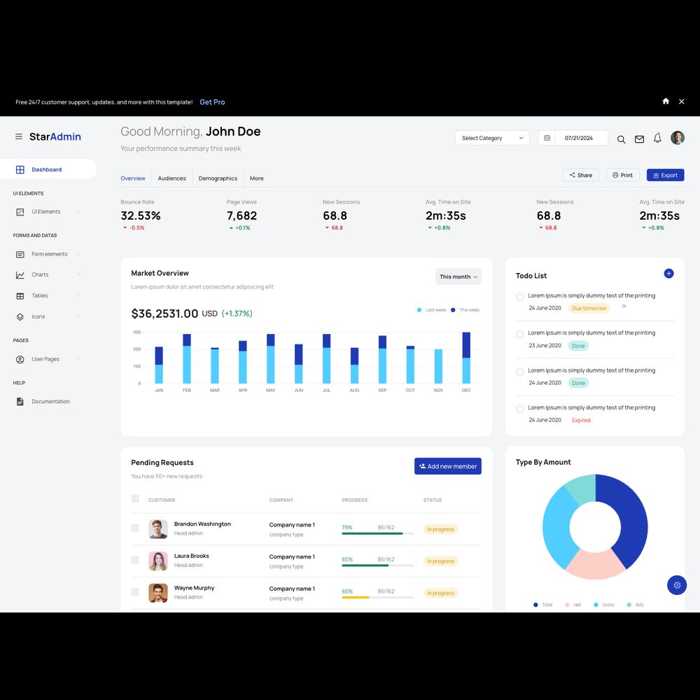 Star Admin is a free responsive admin template built with Bootstrap 5.
