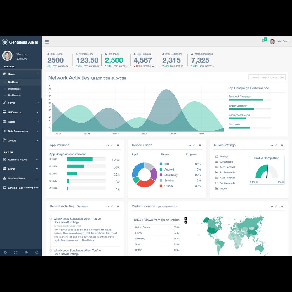 Gentelella uses the default Bootstrap 4 styles along with a variety of powerful jQuery plugins and tools to create a powerful framework for creating dashboards.