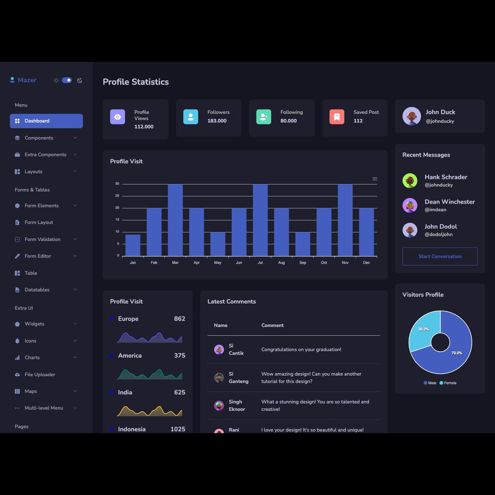 Mazer is an Admin Dashboard Template that can help you develop your web apps faster.