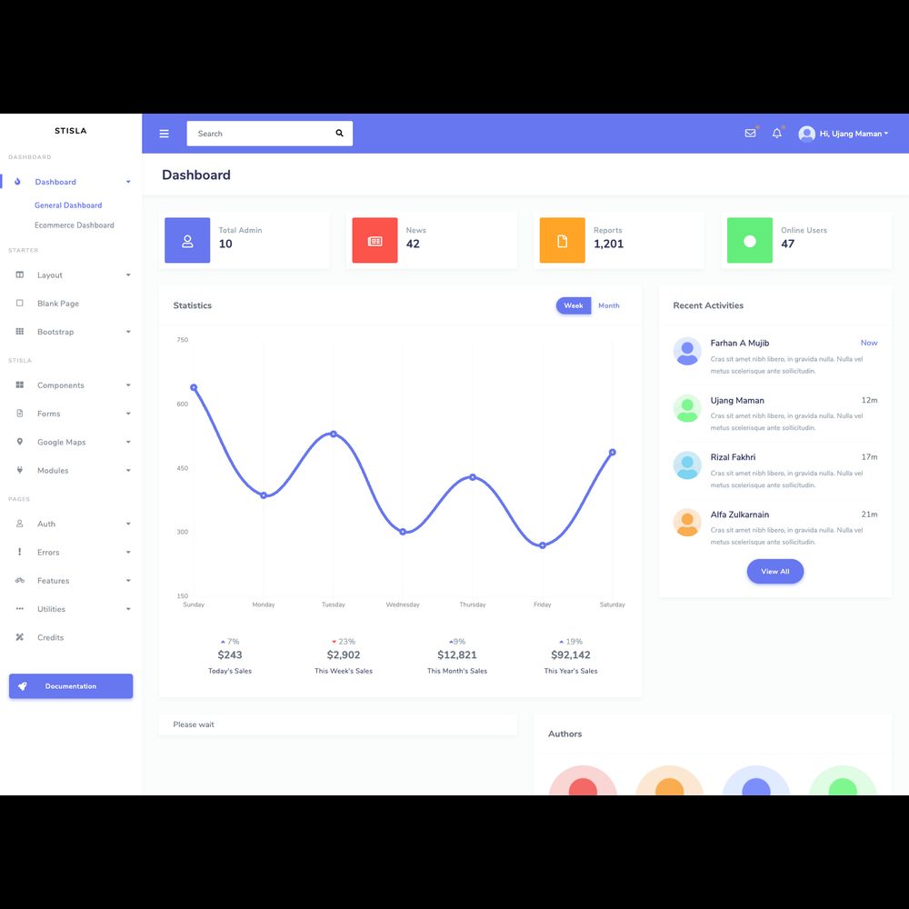 Stisla is a Free Bootstrap Admin Template which will help you to speed up your project and design your own dashboard UI.