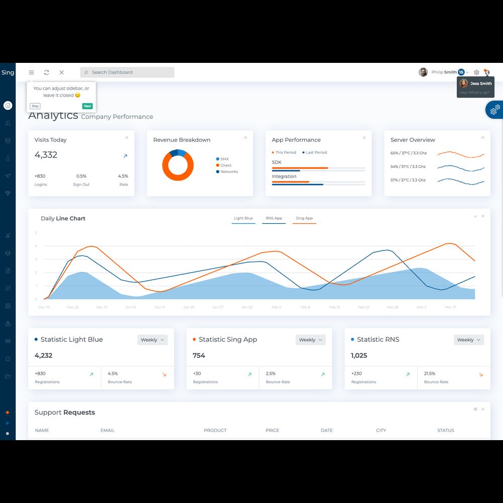Free Vanilla JavaScript Bootstrap 5 Admin and Dashboard Template that comes with all essential dashboard components, elements, charts, graph and application pages.